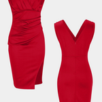 Rosanna Vestido Ceñido Elegante con Escote en V y Abertura Lateral