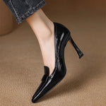 Una punta afilada y un acabado patentado brillante elevan cualquier atuendo — desde jeans casuales hasta un vestido de noche.